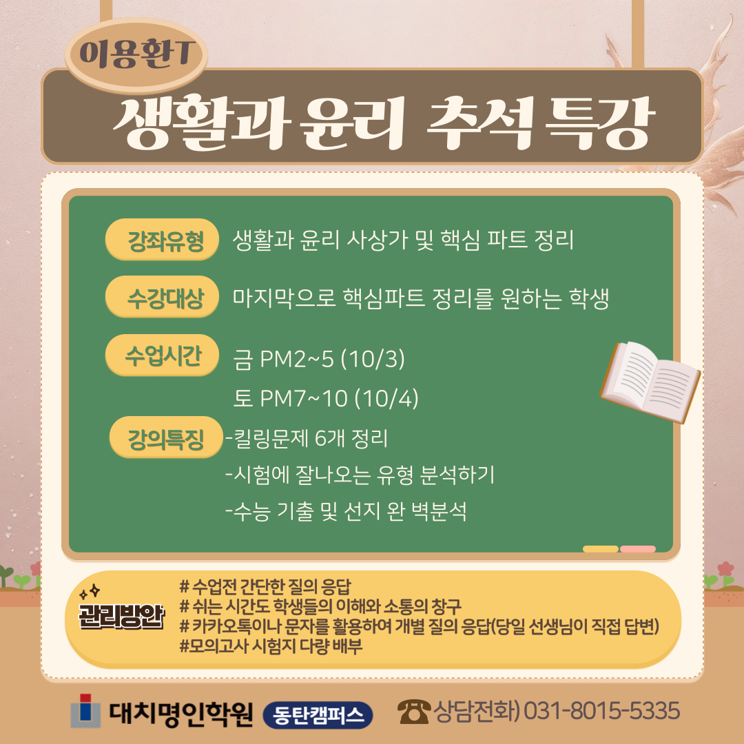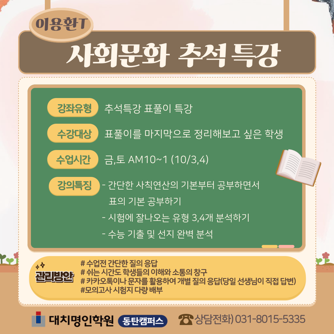 추석을 잡아라~! 2회 특강으로 끝내는 마지막 기회~!