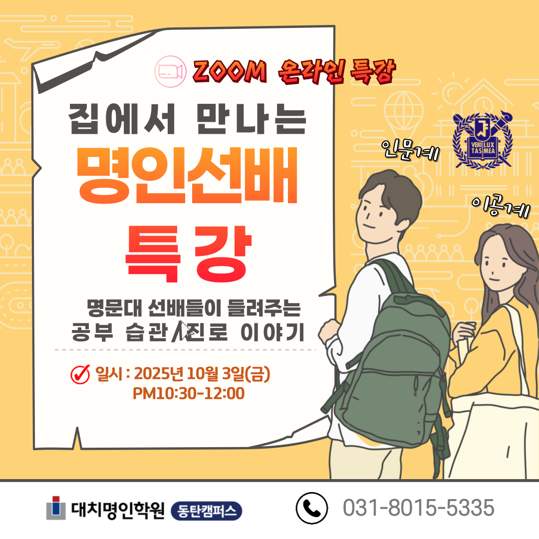 [중·고등학생] 집에서 만나는 명문대 명인선배 ZOOM 온라인 특강 (10/3)
