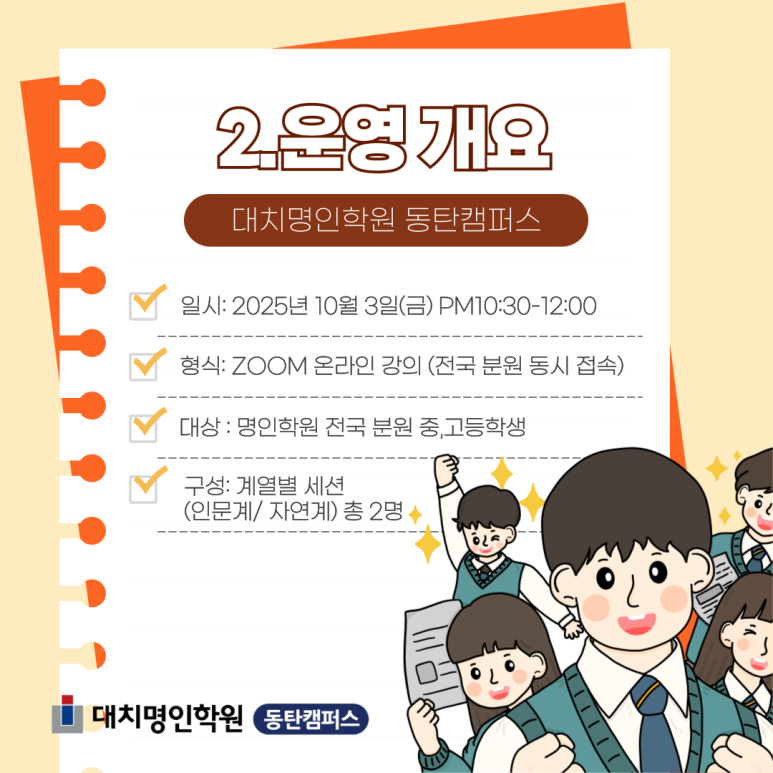 - 대상: 명인학원 전국 분원 중학생, 고등학교 1,2 학년
